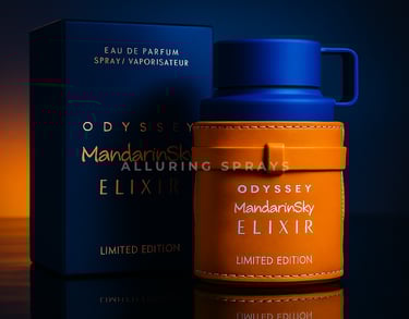 Encased in its striking blue-and-orange bottle, Odyssey Mandarin Sky Elixir stands as a collector’s piece — radiant, luxurious, and truly unique.