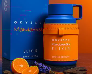 Odyssey Mandarin Sky Elixir captures the brightness of mandarin and the depth of amber in a bold, unforgettable Eau de Parfum.